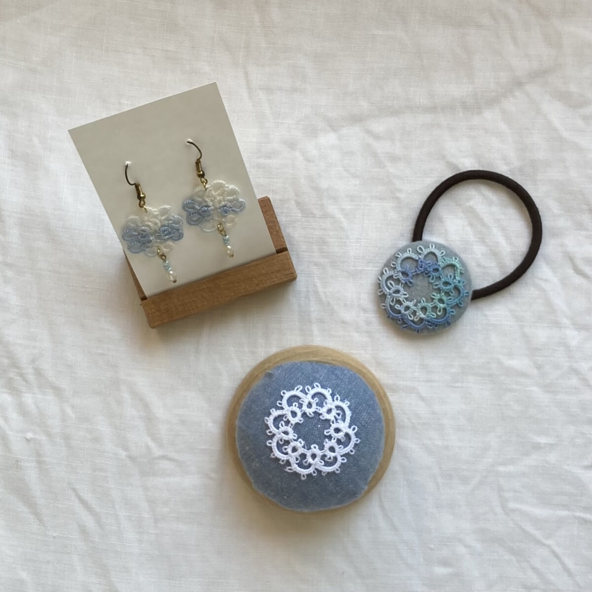 📝タティングレースやビーズで作ったアクセサリーや手編み帽子やポーチ、手織りショールを出品します。指編みでシュシュを作る簡単なワークショップもしますので、手作りを一緒に楽しみましょう。