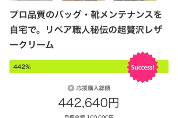 当社が容器を印刷した、高級ブランド専門リペア職人秘伝皮革クリームのクラウドファンディングが1日足らずで442% 兵庫県加古川市